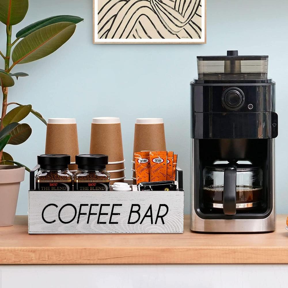 الخيار الأول: منظم خشبي أبيض "COFFEE BAR"