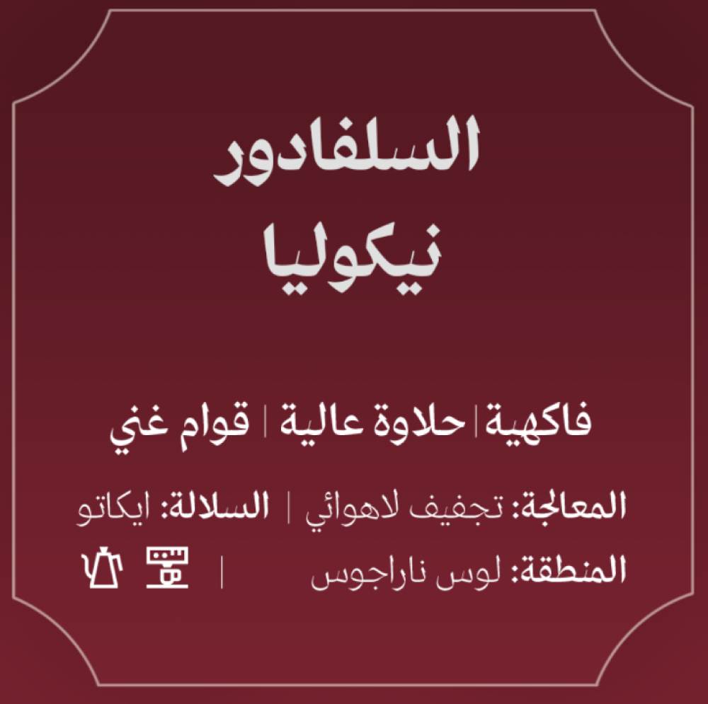 • الايحاءات: فاكهية - حلاوة عالية - قوام غني