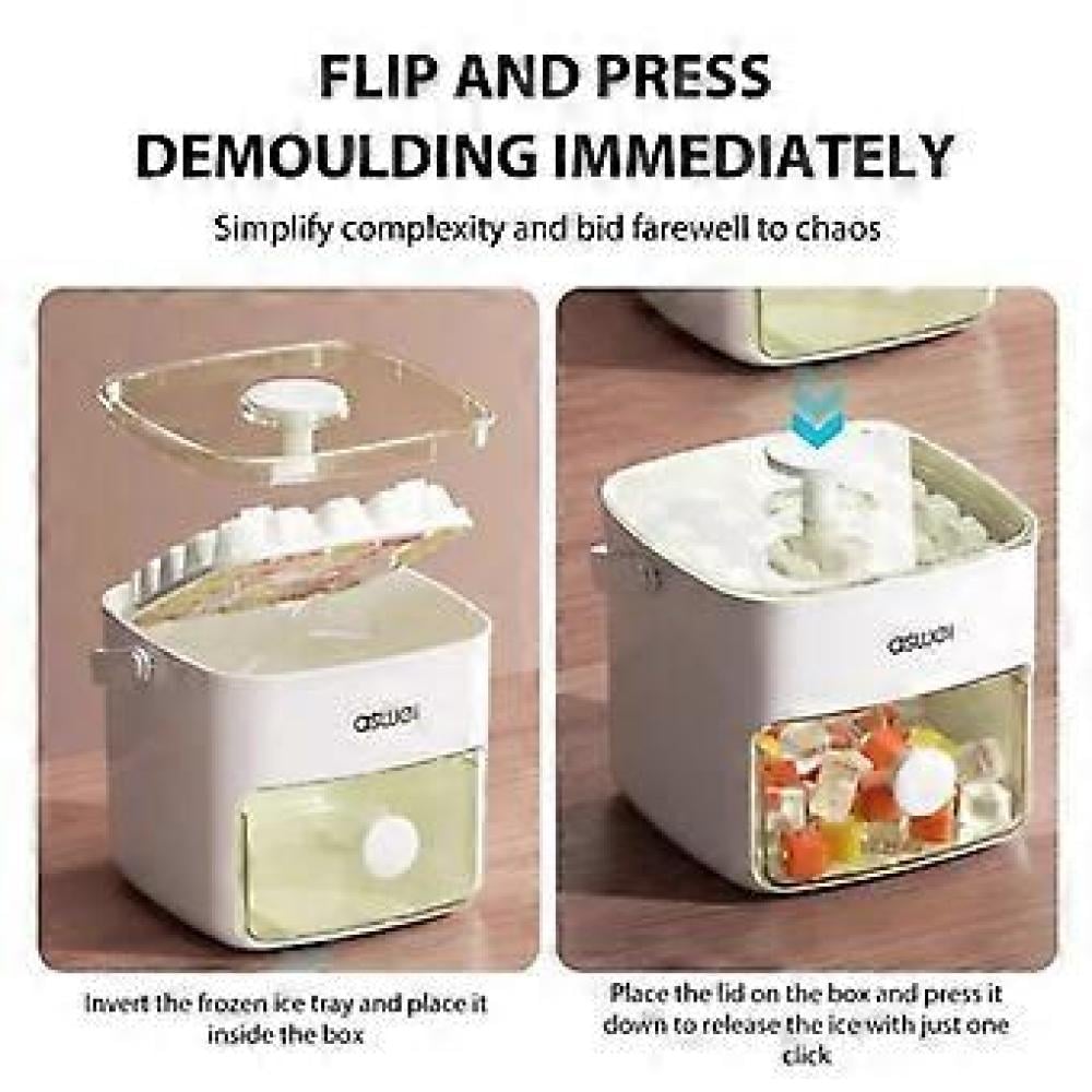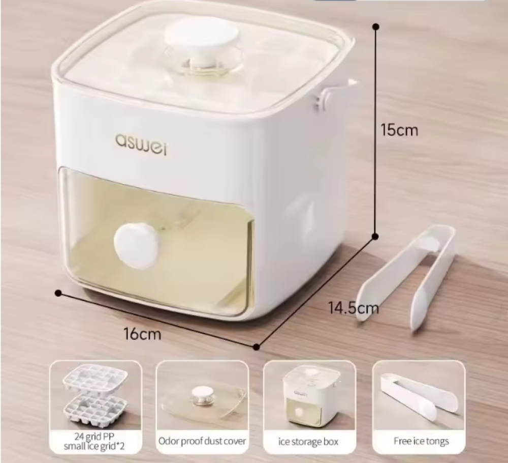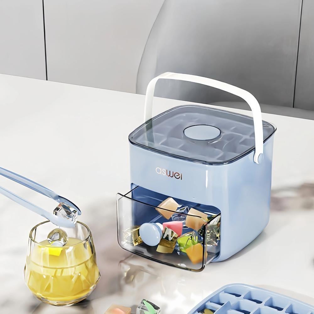 صانعة مكعبات ثلج أنيقة بغطاء محكم وحاوية تخزين عملية. تتيح لك صنع الثلج بسهولة وتخزينه بطريقة مرتبة ونظيفة دون فوضى في الفريزر.