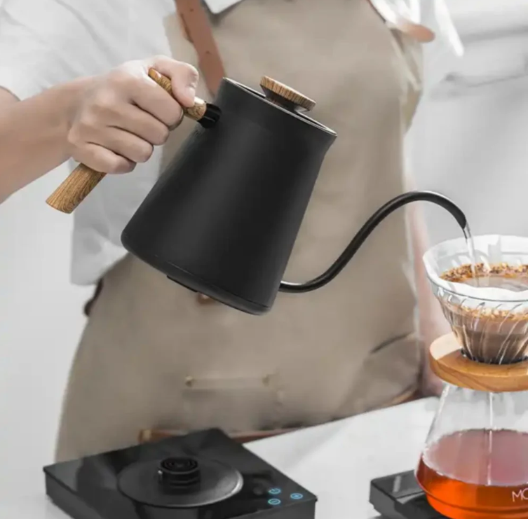 - مقبض الغلاية مصنوع من الخشب سهل المسك لتحكم أفضل.