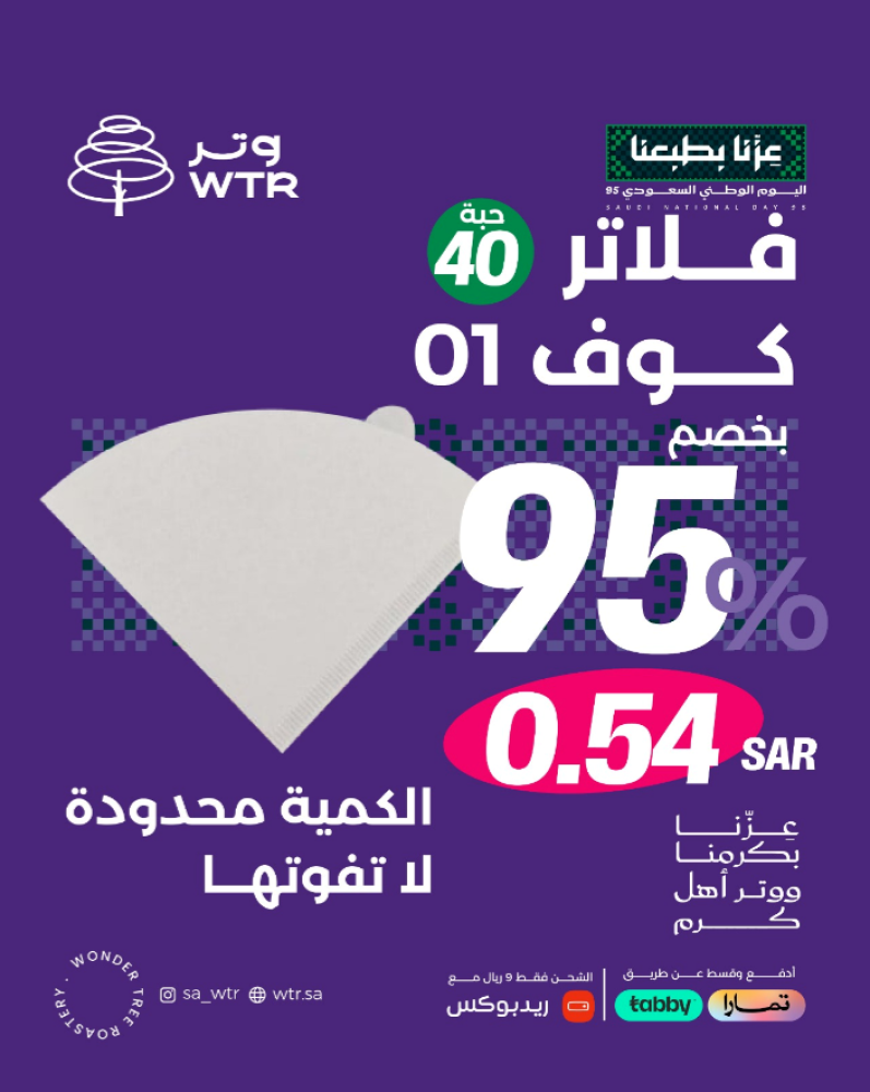 فلاتر ترشيح V60 كوف 40 قطعة - مقاس 01 | V60 Filter 01