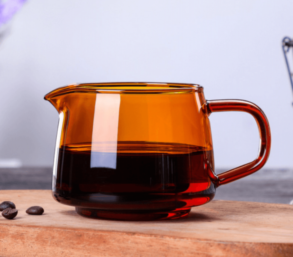ابريق تقديم قهوة زجاجي شفاف بمقبض باللون الكهرماني ذا طابع عصري جذاب و أنيق. يأتي هذا لإبريق بحجم 450 ملي - 600 ملي لتناسب جميع الإحتياجات والأذواق. ولكونها مصنوعة من الزجاج فإنها تناسب الاستخدام لتقديم المشروبات الساخنة والباردة.