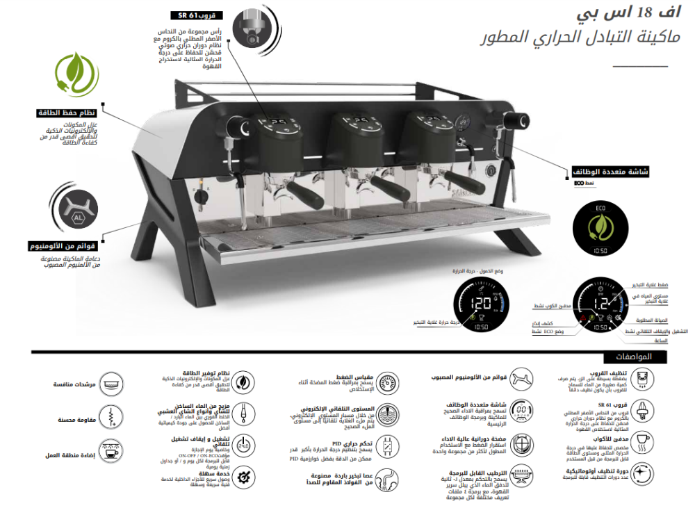 ✅ إمكانية معايرة كل جروب هيد على درجة حرارة وترطيب مستقل، مما يمنحك تحكمًا فرديًا لكل كوب قهوة.